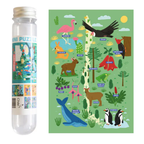 La Puzzlera nos trae este colorido puzzle diminuto de 150 piezas con distintos motivos chilenos, ilustrado por Camila Leiva.