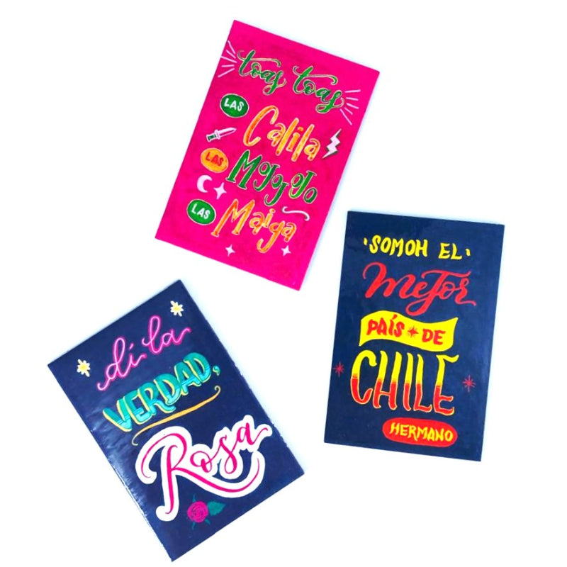 Los videos virales se han hecho parte del humor chileno y se han incorporado al lenguaje de las maneras más inesperadas! Con esta colección en caligrafía cartelista queremos reconocer los virales más icónicos de las últimas décadas y darte la oportunidad de llevarlos contigo donde vayas!